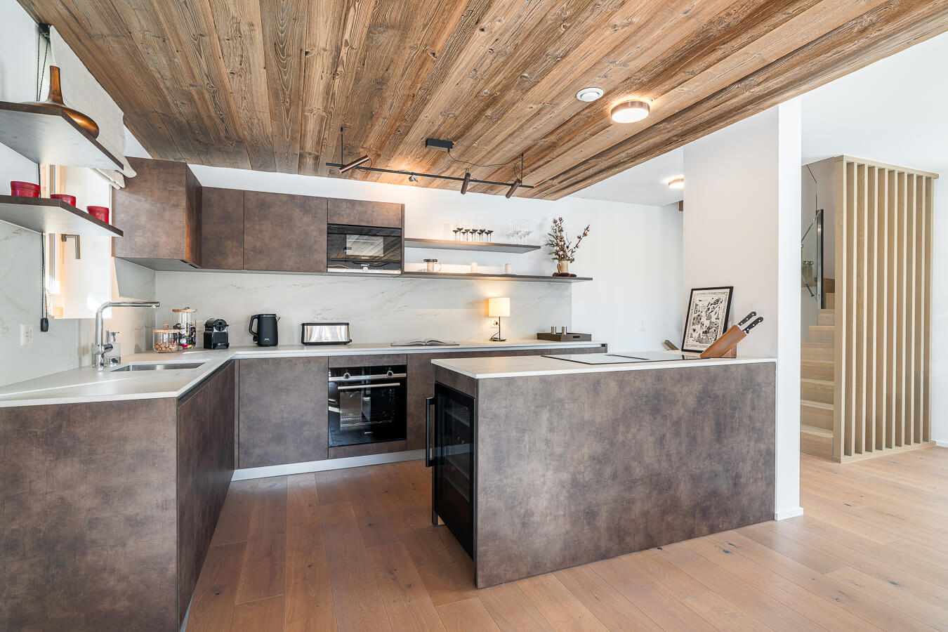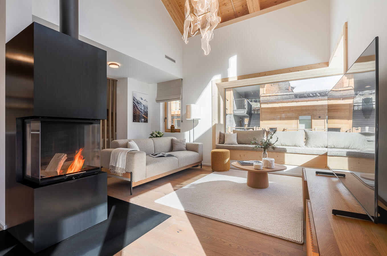 Dieses freistehende Chalet auf drei Ebenen verfügt über drei Schlafzimmer mit Doppelbett (180 × 200 cm) sowie über zwei Badezimmer mit Dusche. Der Wohnbereich bietet eine Sitzecke mit Fernseher, eine voll ausgestattete Küche, einen Holzofen und großzügige Außenbereiche mit Panoramablick auf die umliegenden Berge von Sorebois und Nava. Das Chalet ist nach Süden, Osten und Norden ausgerichtet. Zur Ausstattung gehören Haushaltsgeräte wie Geschirrspüler, Nespresso-Kaffeemaschine, notwendige Küchenutensilien usw.