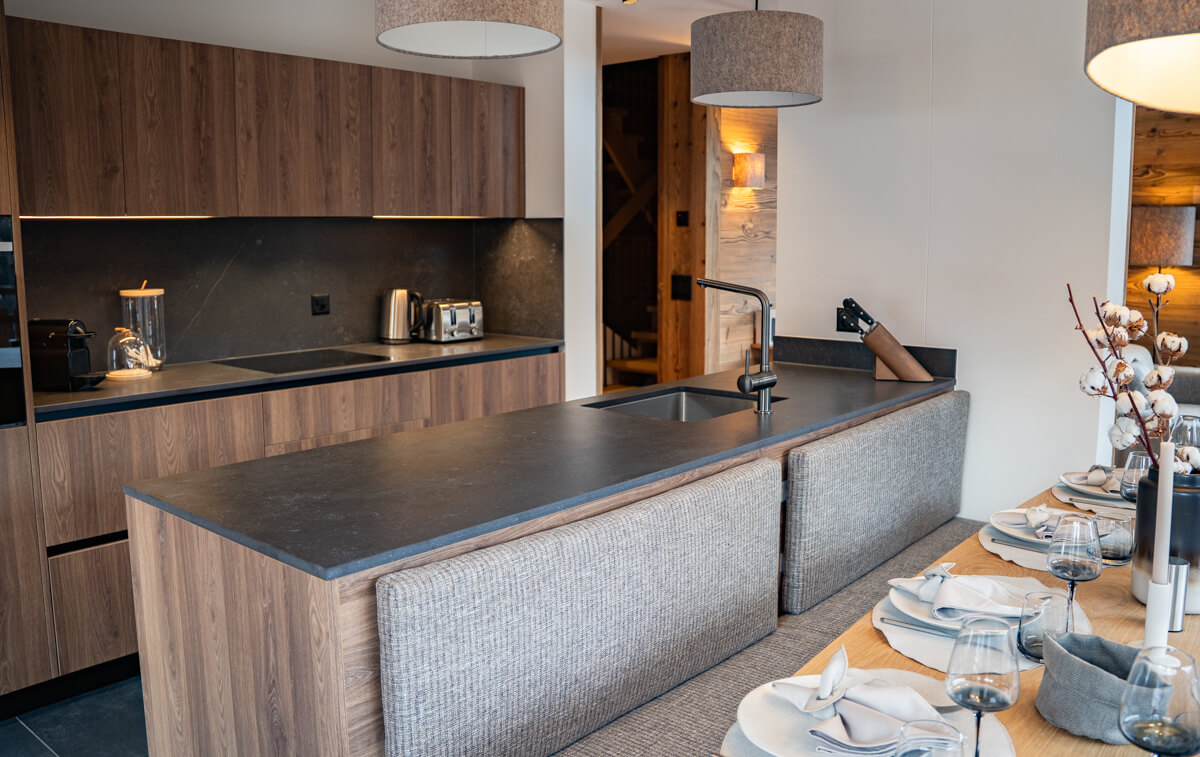 Dieses freistehende Chalet auf drei Ebenen verfügt über drei Schlafzimmer mit Doppelbett (180 × 200 cm) sowie drei angrenzende Badezimmer mit Dusche. Der Wohnbereich bietet eine gemütliche Sitzecke mit Fernseher, eine voll ausgestattete Küche, einen Holzofen und schöne Außenbereiche mit Blick ins Tal sowie eine nach Süden ausgerichtete Terrasse mit freiem Blick auf Sorebois. Das Chalet ist nach Süden, Osten und Norden ausgerichtet. Zur Ausstattung gehören Haushaltsgeräte wie Waschmaschine, Geschirrspüler, Nespresso-Kaffeemaschine, alle notwendigen Küchenutensilien usw.