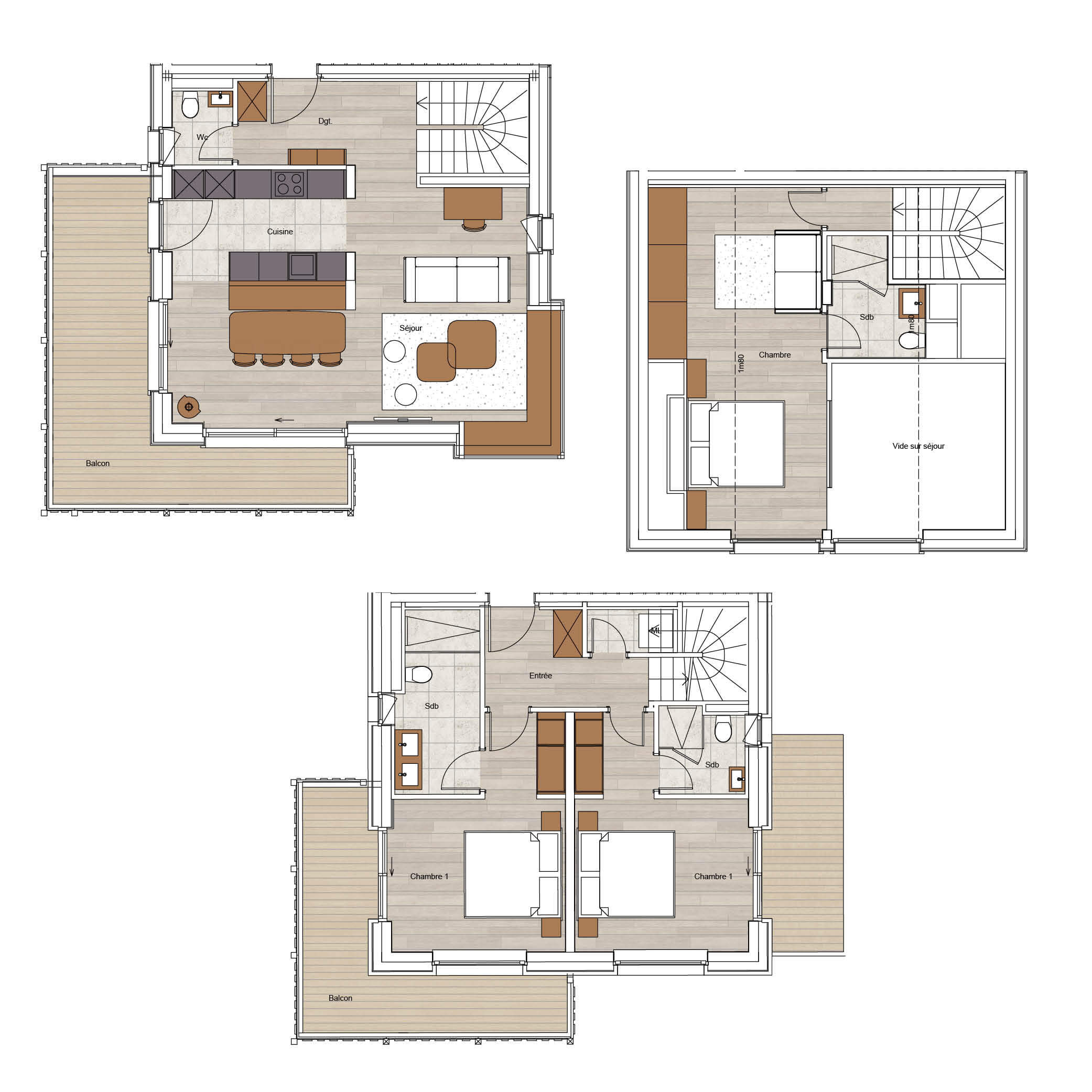 Ce chalet sur trois étages vous accueille pour un séjour inoubliable à la montagne. Parcourez son plan afin de visualiser son organisation intérieure et apprécier ses vastes espaces de vie.