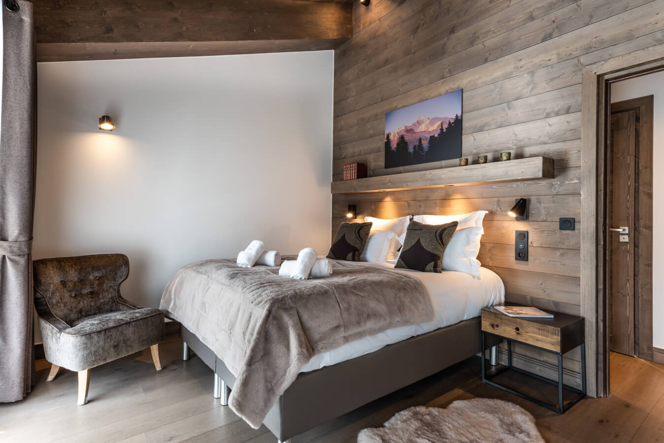 Dieses freistehende Chalet auf drei Ebenen verfügt über drei Schlafzimmer mit Doppelbett, ein Kabinenzimmer ohne Fenster mit Etagenbett sowie drei Badezimmer mit Dusche und Badewanne. Der Wohnbereich bietet eine Sitzecke mit Fernseher, eine komplett ausgestattete Küche, einen Holzofen und Außenbereiche mit freiem Blick auf die umliegenden Gipfel. Das Chalet ist nach allen Himmelsrichtungen ausgerichtet und bietet so den ganzen Tag über wechselndes Licht und Ausblicke. Zur Ausstattung gehören Haushaltsgeräte wie Geschirrspüler, Nespresso-Kaffeemaschine, Küchenutensilien etc.