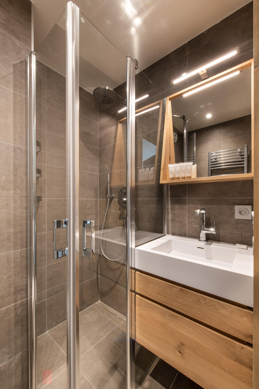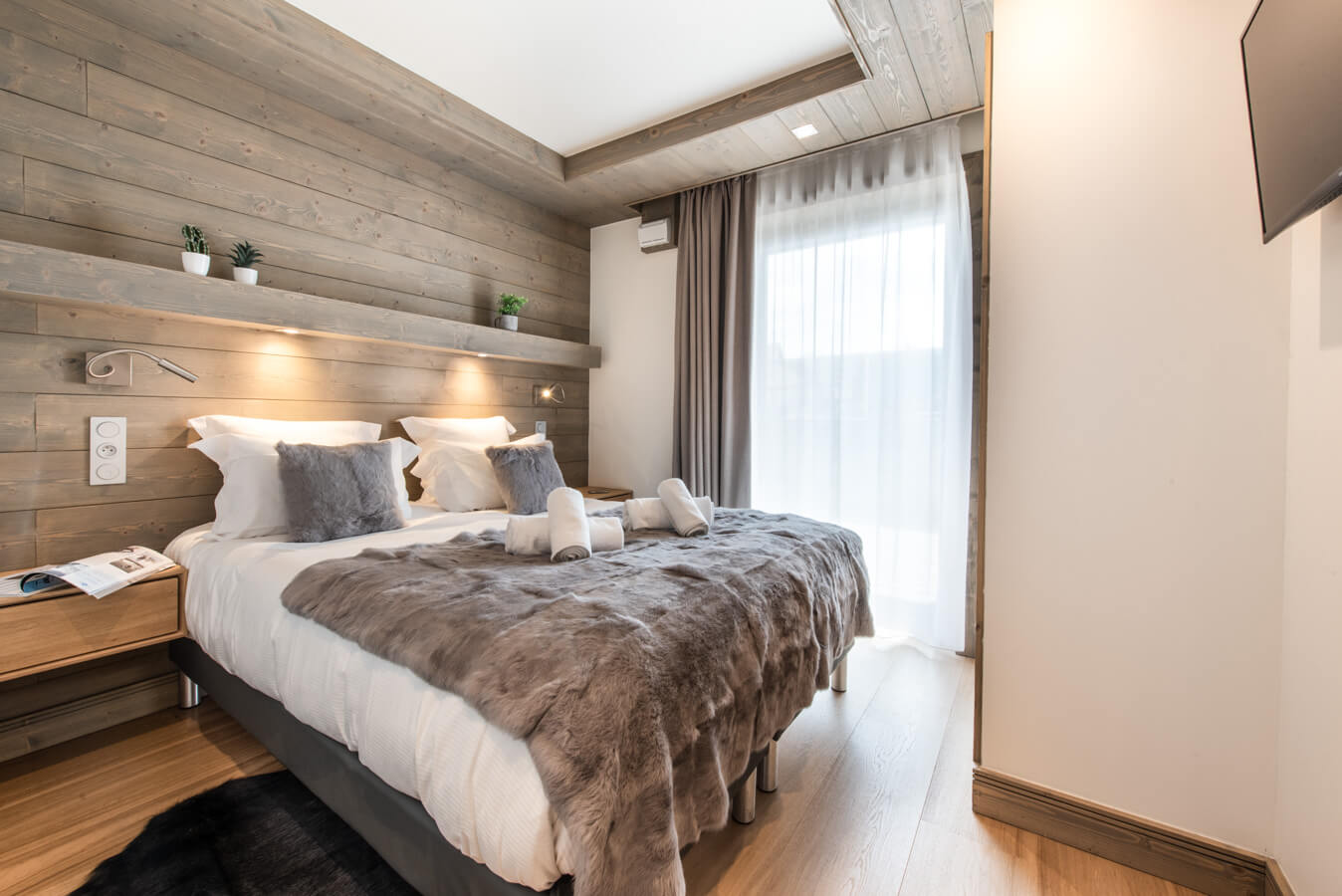 Diese Wohnung verfügt über drei Schlafzimmer mit einem Doppelbett (180 × 200 cm), ein Kabinenschlafzimmer mit Etagenbett sowie über drei Badezimmer. Der Wohnbereich bietet eine Sitzecke mit Fernseher und eine voll ausgestattete offene Küche. Zwei Balkone ergänzen den Wohnraum. Zur Ausstattung der Wohnung gehören Haushaltsgeräte wie eine Waschmaschine, ein Geschirrspüler, eine Nespresso-Kaffeemaschine, die notwendigen Küchenutensilien usw.