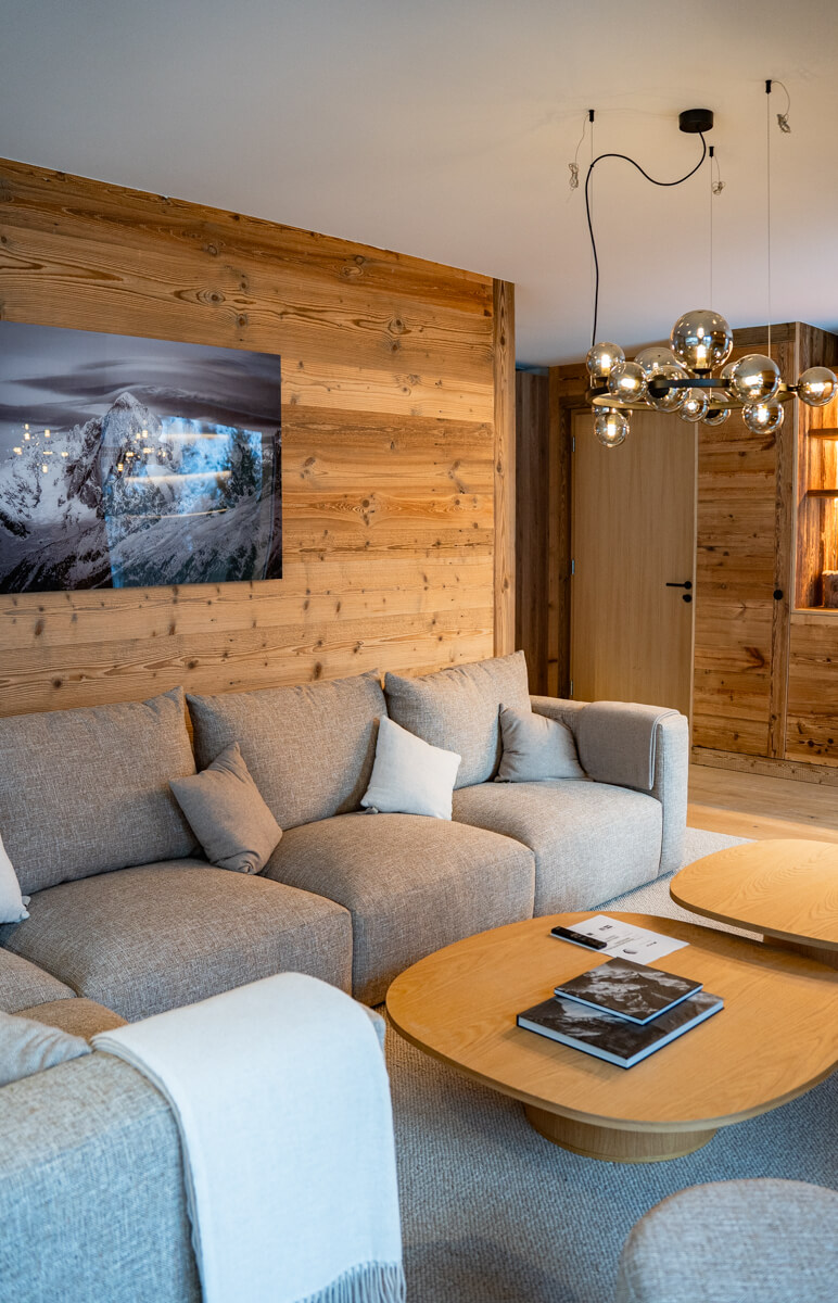 Dieses freistehende Chalet auf drei Ebenen verfügt über drei Schlafzimmer mit Doppelbett (180 × 200 cm), ein Zimmer mit zwei Etagenbetten sowie drei Badezimmer mit Dusche und Badewanne. Der Wohnbereich bietet eine Sitzecke mit Fernseher, eine voll ausgestattete Küche, einen Holzofen und Außenbereiche, darunter eine nach Süden ausgerichtete Terrasse mit freiem Blick auf Sorebois. Das Chalet ist rundum ausgerichtet, wodurch sich Licht und Aussicht im Tagesverlauf ständig verändern. Zur Ausstattung gehören Haushaltsgeräte wie Waschmaschine und Trockner, Geschirrspüler, Nespresso-Kaffeemaschine, notwendige Küchenutensilien usw.
