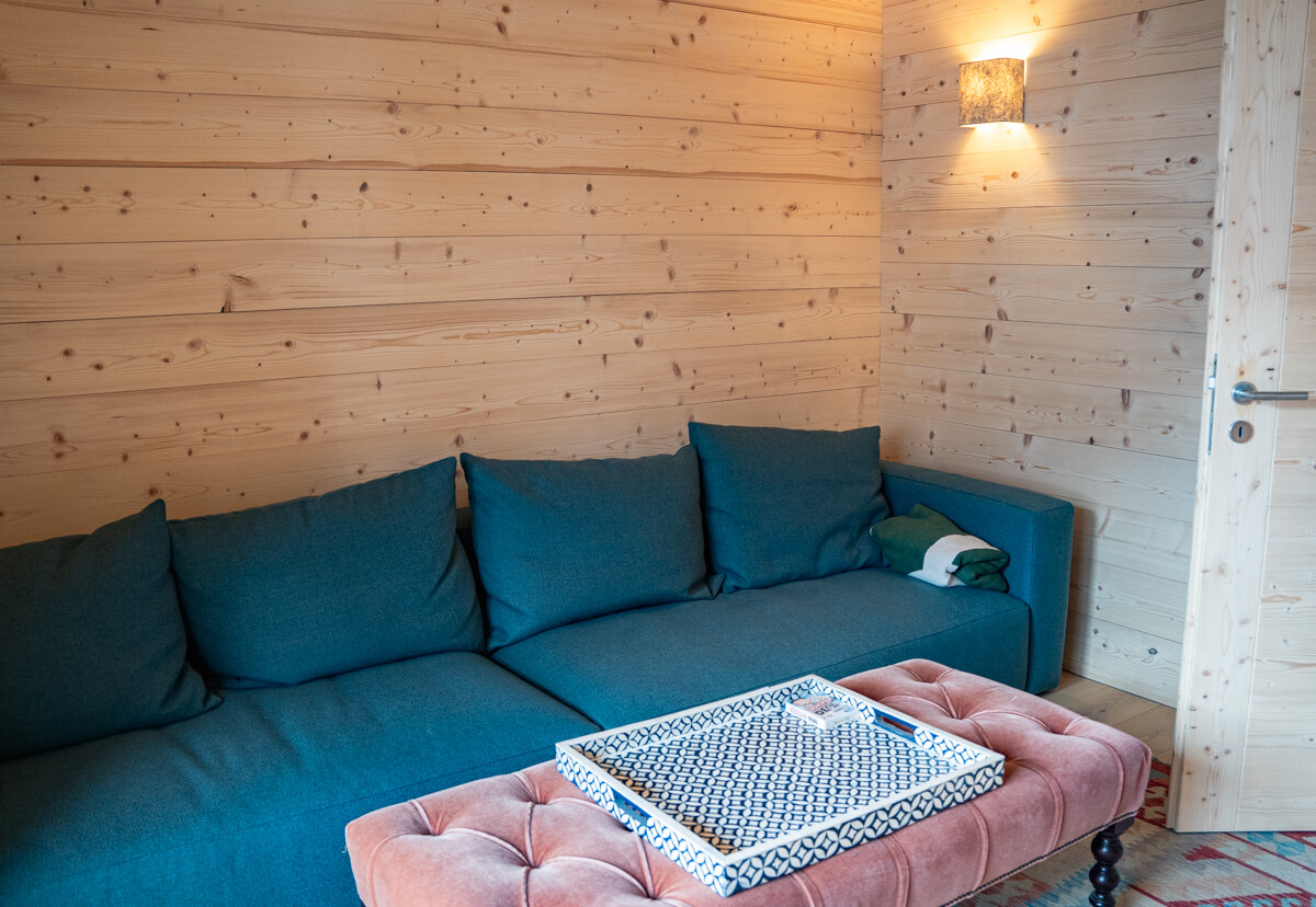 Dieses individuelle Chalet erstreckt sich über drei Etagen und verfügt über vier Schlafzimmer mit Doppelbett (180200), ein Zimmer mit zwei Einzelbetten (80200) sowie fünf en-suite Badezimmer mit Dusche und zwei Badewannen. Der Wohnbereich bietet eine Sitzecke mit Fernseher, eine voll ausgestattete Küche und Außenbereiche mit freiem Blick auf die umliegenden Gipfel. Besonderes Extra: ein Kinoraum. Das Chalet ist nach allen Himmelsrichtungen ausgerichtet, sodass Licht und Aussicht sich im Laufe des Tages ständig verändern. Es ist mit Haushaltsgeräten wie Waschmaschine und Trockner, Geschirrspüler, Nespresso-Maschine, Küchenutensilien etc. ausgestattet.